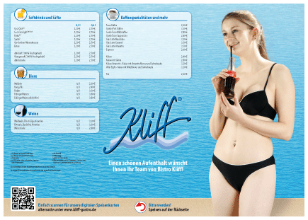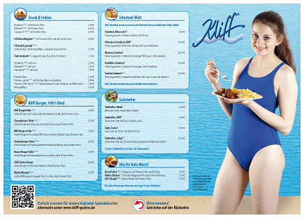 Kliff Bädergastronomie entführt Sie in die kulinarische Welt des Badens. Denn mit unseren frisch zubereiteten Speisen und Getränken machen wir den Besuch im Schwimmbad zu einem besonderen Erlebnis. Lassen Sie sich von uns verwöhnen.